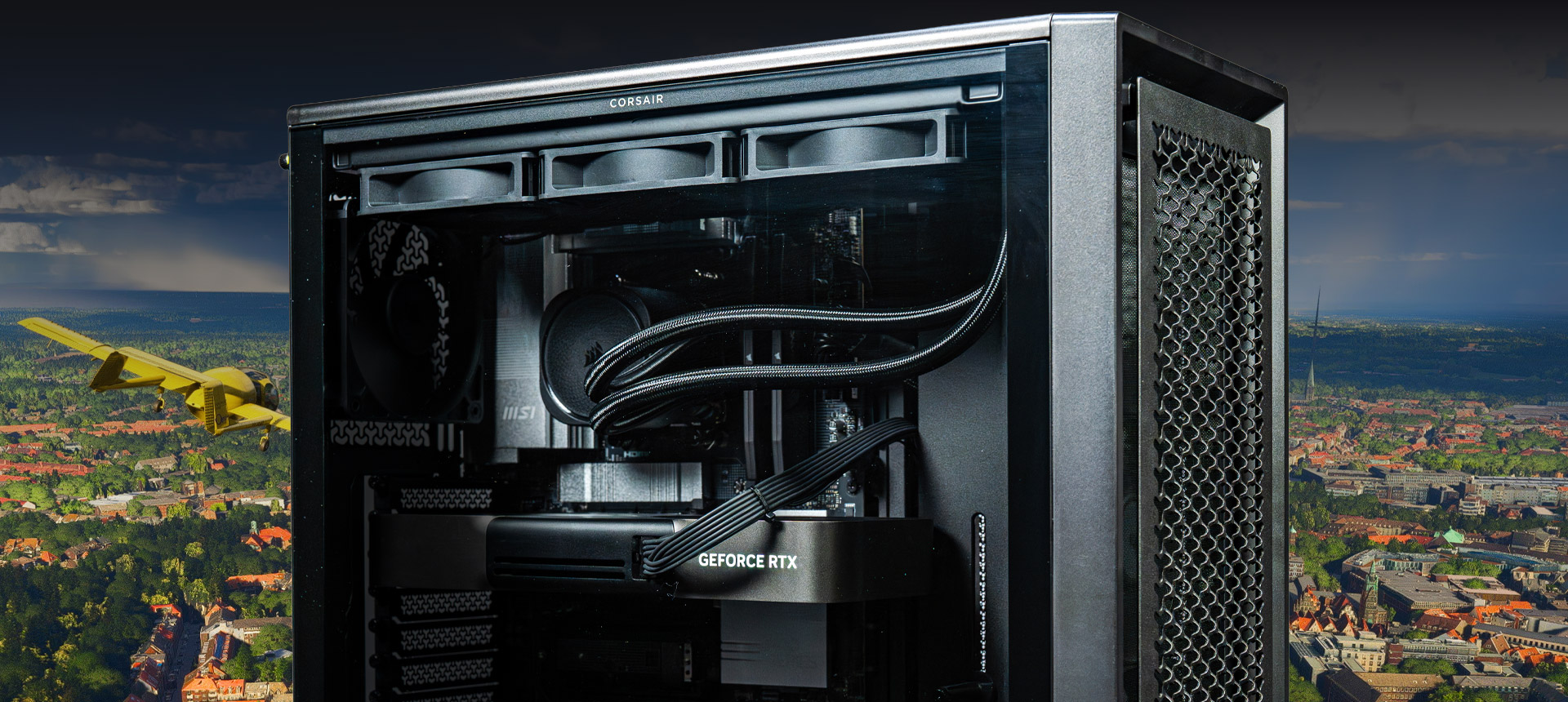 Built inside the CORSAIR FRAME 4000D Mid-Tower Case, your flight sim system is fully equipped for peak performance. And thanks to its modular layout and upgrade-friendly design, expanding in the future is easy—should you ever need it.
