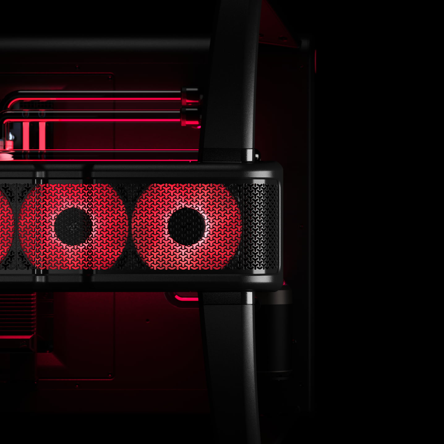 ARACHNID is equipped with dual 360mm radiators ensure exceptional cooling capacity, allowing for efficient heat management even during intense workloads.