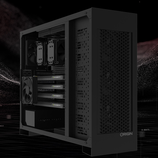 ORIGIN PC offers several next-gen graphics options, including the latest generation of NVIDIA GeForce RTX and NVIDIA RTX Workstation graphics cards. When paired with a powerful workstation processor, your L-Class system can support up to 4 workstation RTX graphics cards for the best possible real-time ray tracing performance. This level of graphical power is perfect for 3D renders, VR development, and GPU-based applications.