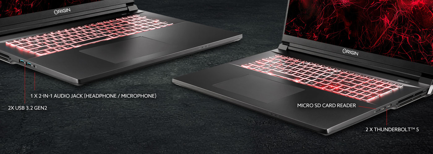 Meet all your connectivity needs with two USB 3.2 Gen2 ports (Type A), two Thunderbolt 5 ports, Mic and Audio jacks, one HDMI, and two Network Jack. Using the Thunderbolt 5 ports, add on up to two 4K displays or a single 8K display. Get even faster network connections for your games with built-in Wifi-7 or an Ethernet 2.5 Port.