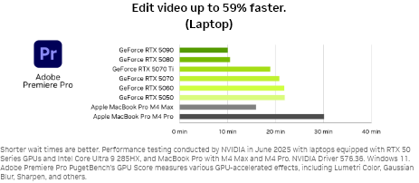 Shoot, edit, and deliver faster in 4k, 8k, and even 12k, saving time and effort. Accelerate AI effects with Tensor Cores on RTX GPUs, edit 4:2:2 multi-camera content with GPU optimization, and export videos in a fraction of the time using up to three dedicated encoders on RTX 5090 GPUs.